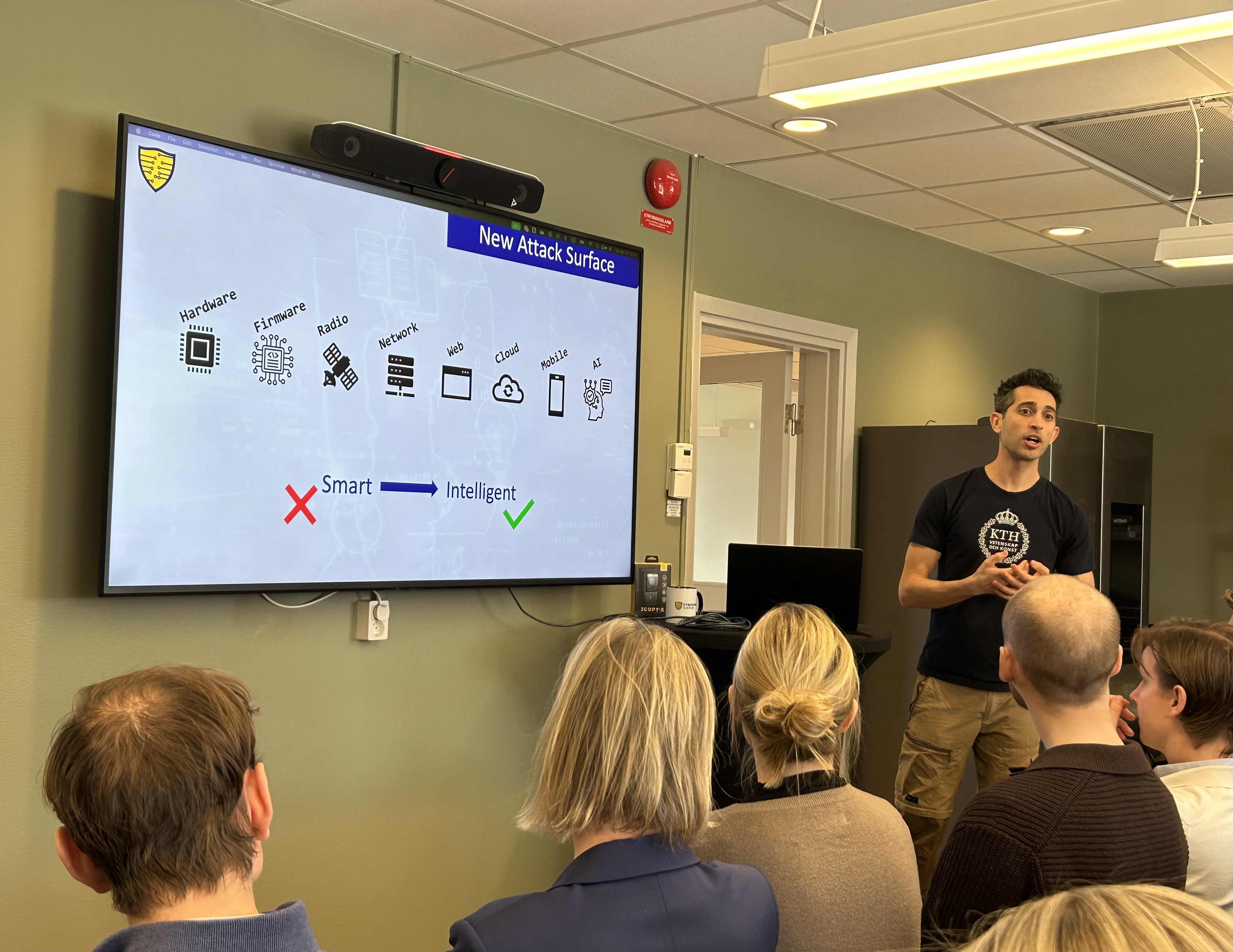 Dr. Emre Süren, Head of Royal Hacking Lab, delivered a lecture to the Executive School on offensive security and artificial intelligence. He showcased impactful lab research, including car hacking demonstrations and prompt injection attacks targeting generative AI models. The session also highlighted the lab’s first research grant, which will fund a new project on cyber threat intelligence to detect early signals of AI-driven attacks against Sweden’s critical infrastructure.