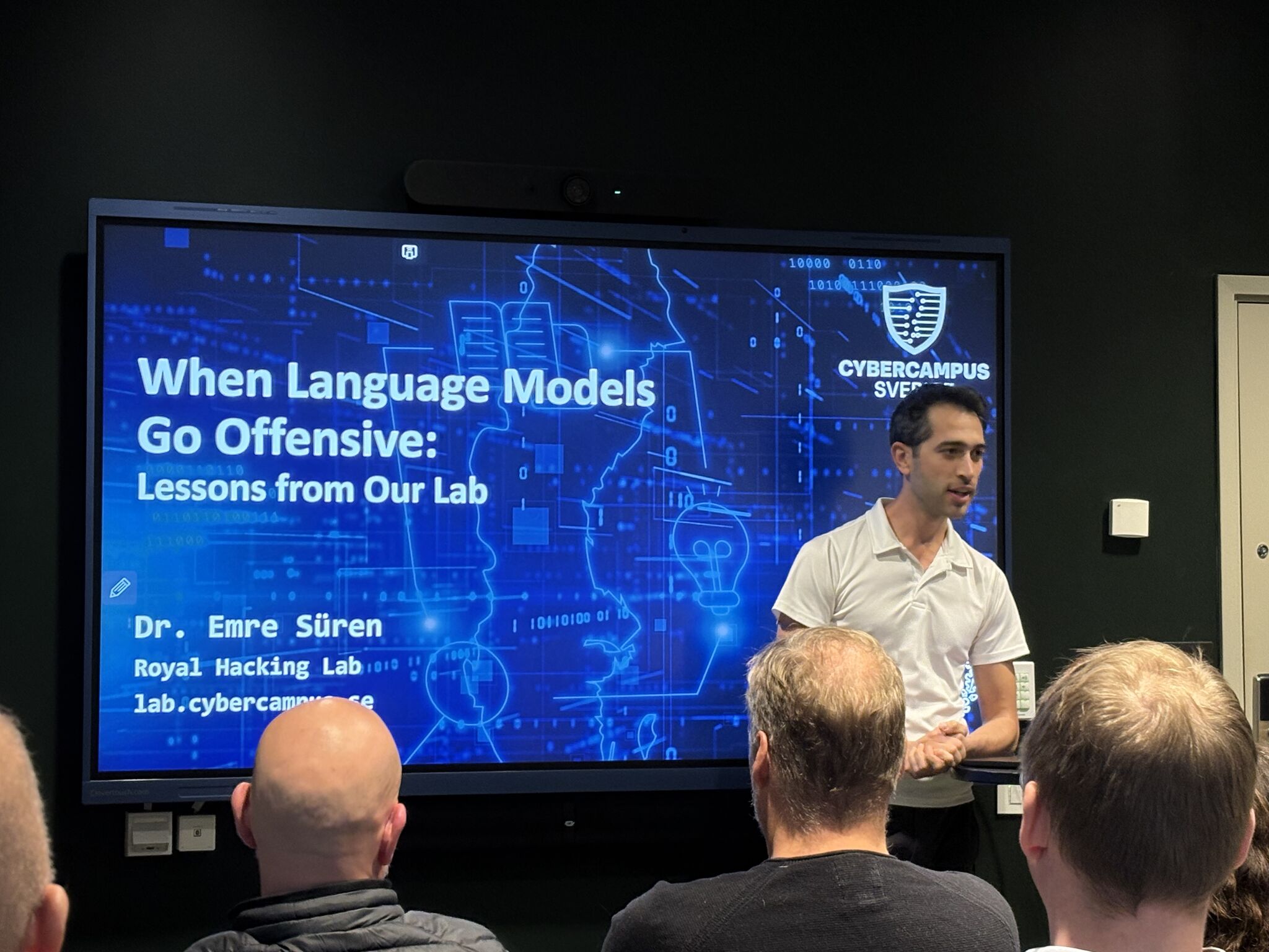 A restricted event was held at the top floor of KTH Rektorshuset where Dr. Emre Süren presented a demo revolving around vulnerability research and AI.